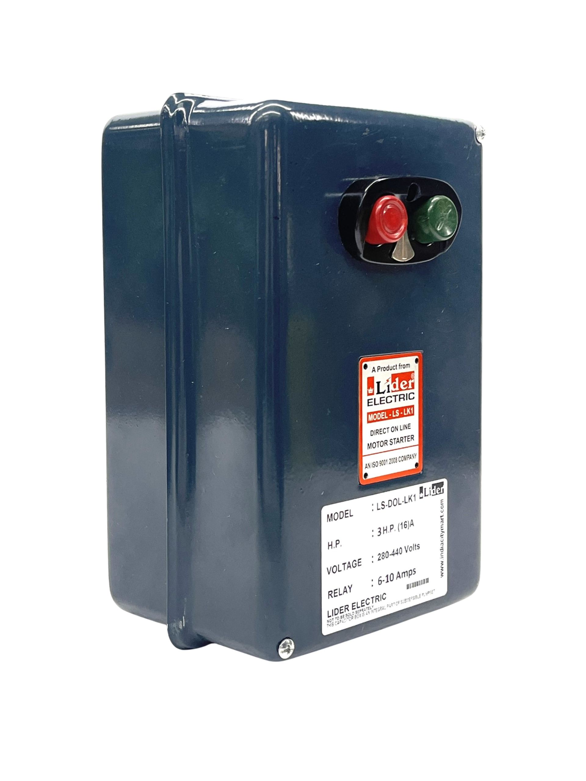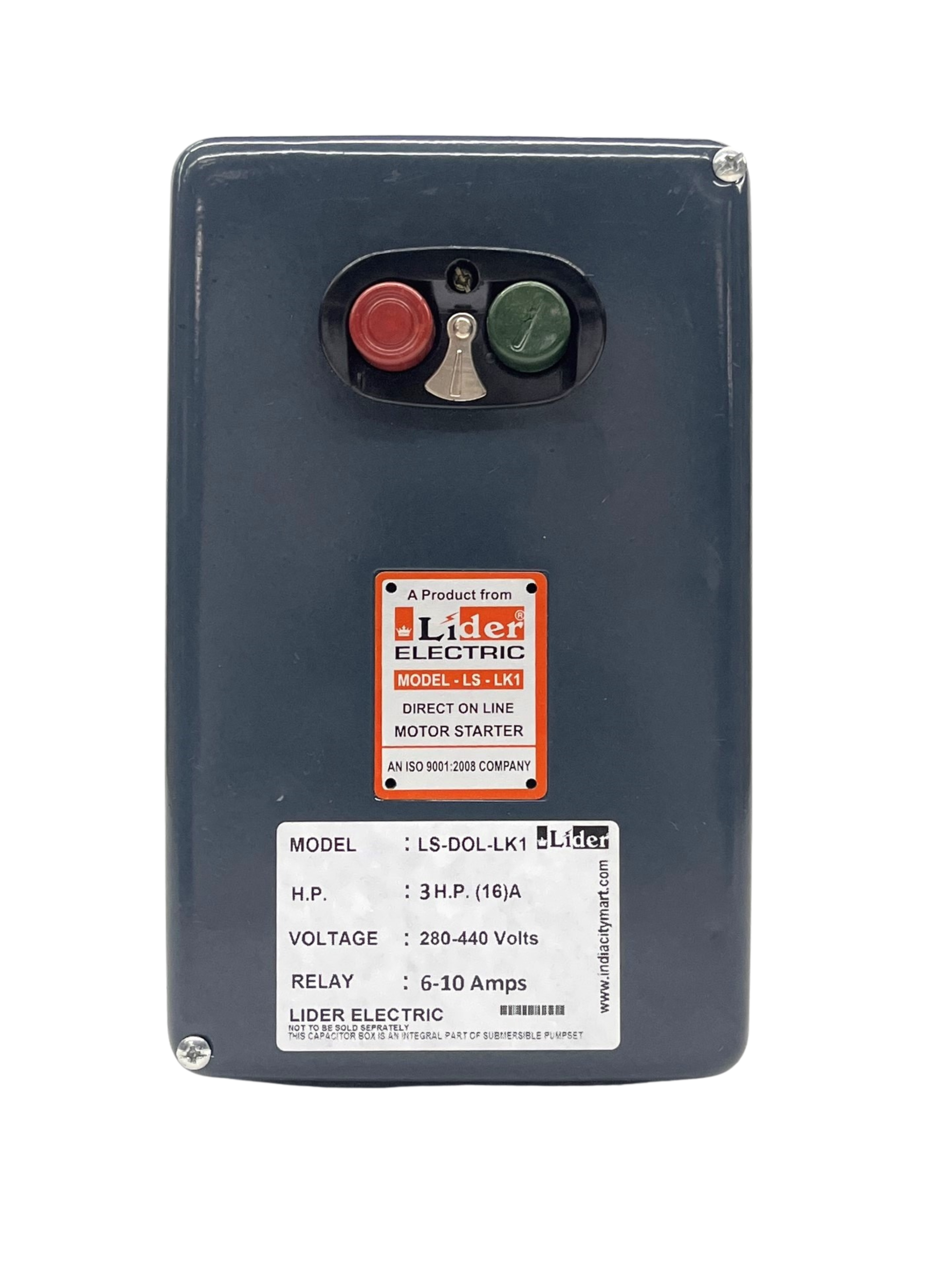 Starter for 5 HP Motor Pump provided with 16 Amps L&T type Contactor 4 pole [AC3 Motor Duty] with easy replaceable heavy-duty fixed and moving contacts and Coil Voltage range between 280-415 Volts with easy replacement of coil. Thermal Overload Relay ensures Overload Protection and manual reset facility [Range 9~14 Amps for 5 HP Motor Pump] saves the pump from overheating and burning of winding. [Please see full PRODUCT DESCRIPTION below]