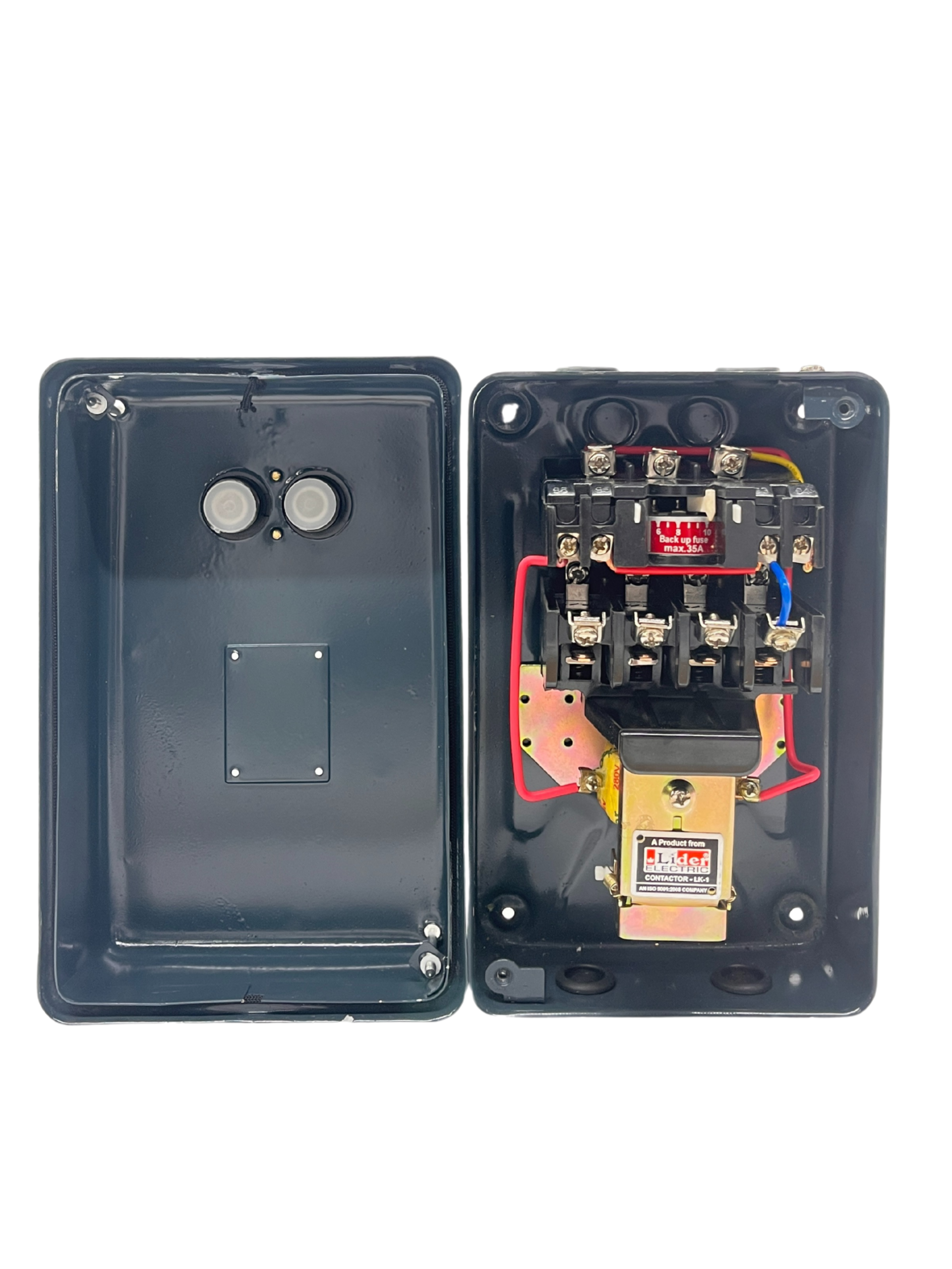 The LS-DOL-LK1 Dol Starter is designed for a frequency of 50 Hertz (HZ) and a rated voltage of 220 Volt (V). The surface color of the starter is blue, and the thickness and dimensions vary based on availability. ensuring its quality and reliability. Whether for industrial or commercial use, this DOL starter is a reliable and essential component for motor control and protection.