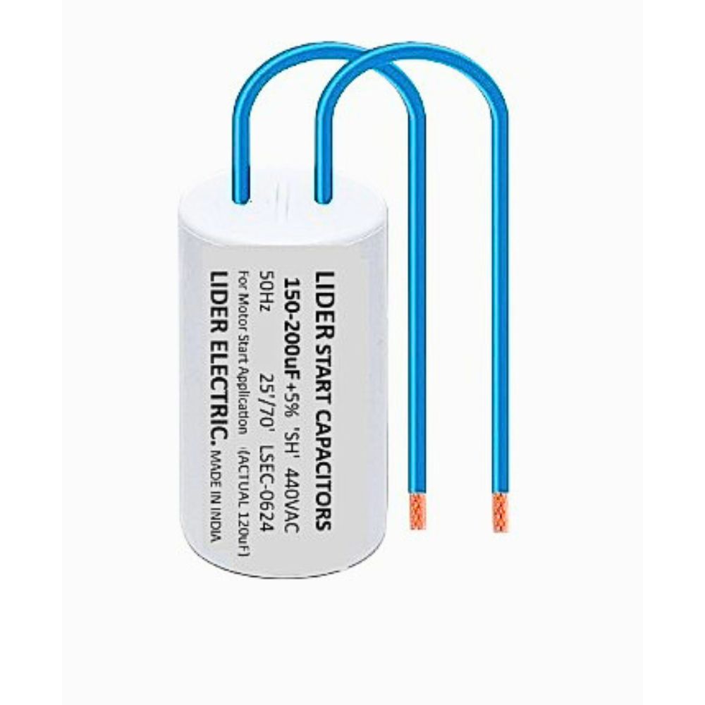 A start capacitor with a rating of [150-200 ] microfarads (MFD or µF) is a high-capacity, non-polarized electrolytic capacitor designed to provide a momentary power boost to single-phase AC motors, particularly those found in water pumps, submersible pumps, and HVAC compressors. Its primary function is to generate the high initial torque needed to start the motor under load.
